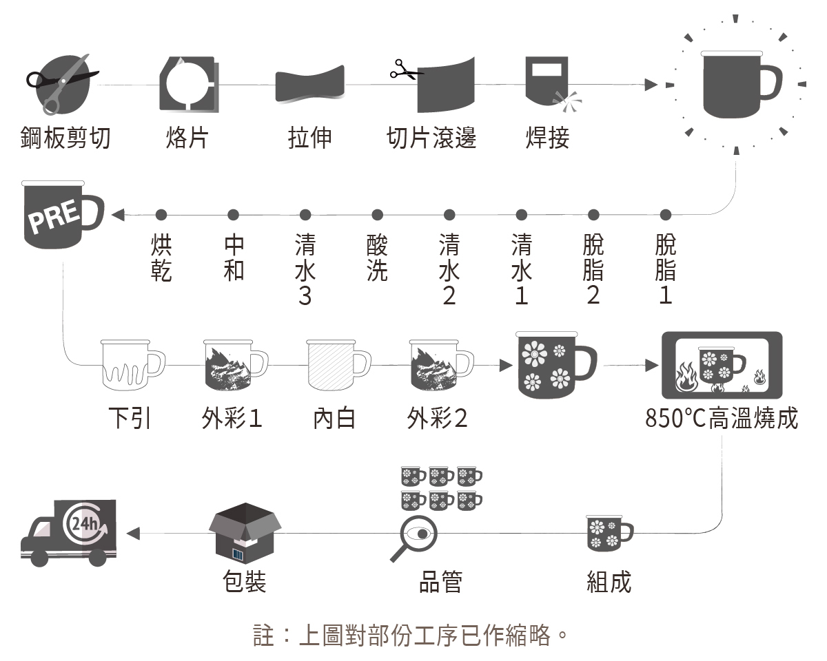 ◉琺瑯不同於所熟知的陶瓷材質,好的琺瑯工藝比陶瓷或不鏽鋼複雜得多。