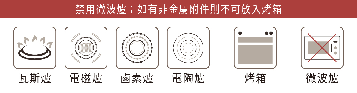 ◉琺瑯內含金屬板材,唯獨禁止使用微波爐加熱。