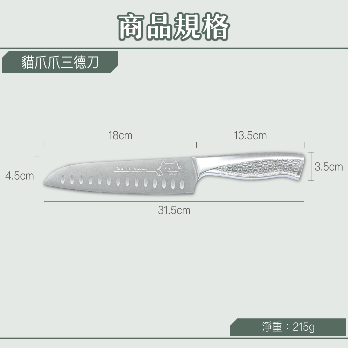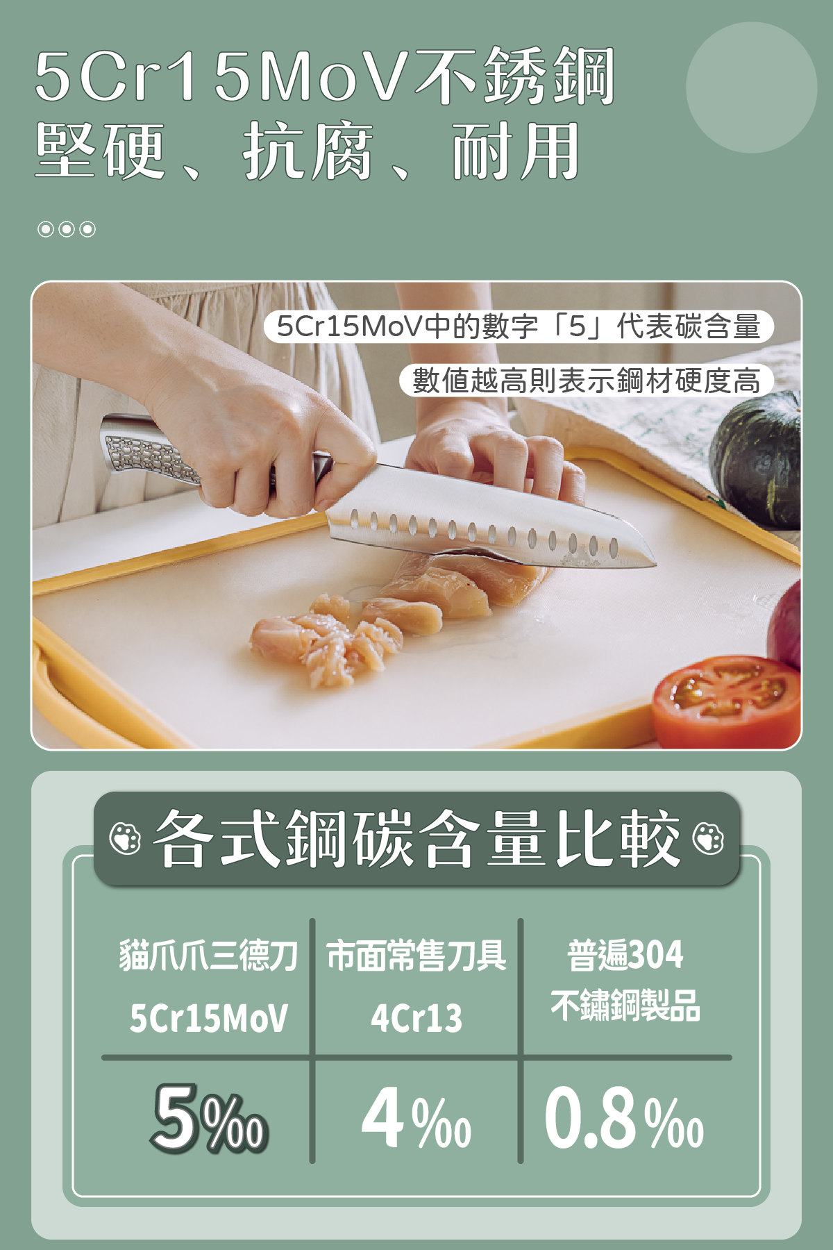 材質/刀身:5Cr15MoV高碳鋼、刀柄:430不鏽鋼