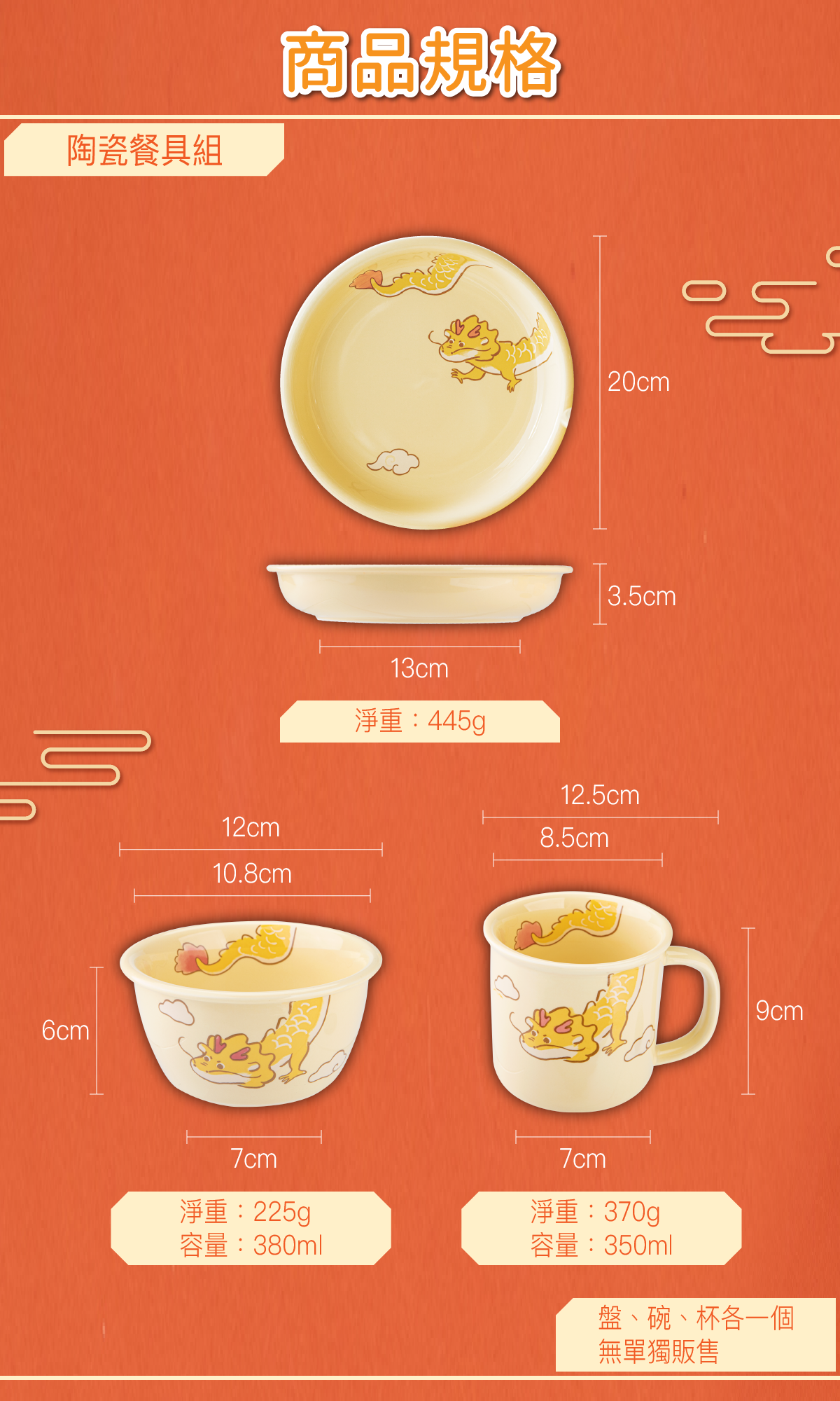 奶乎乎的吉吉龍餐盤、餐碗和一個杯子!