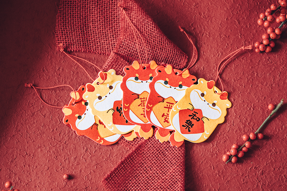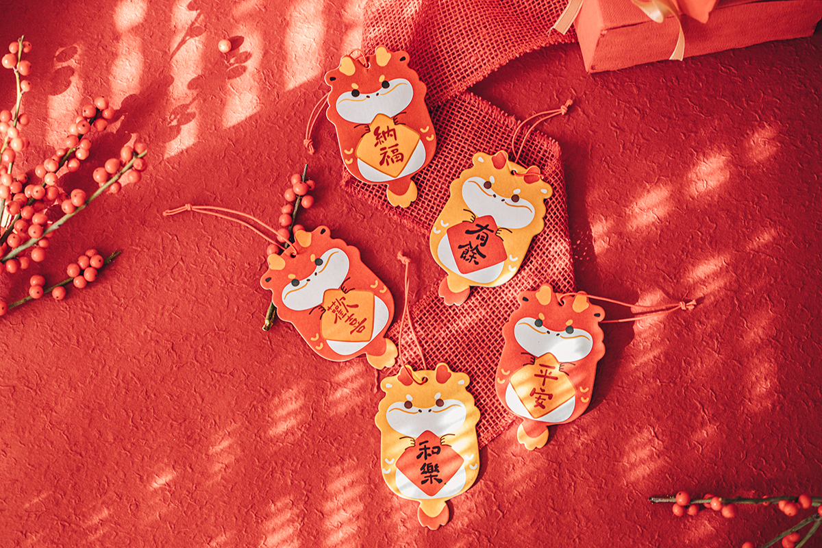 五隻吉吉龍,拿著納福、平安、和樂、歡喜、有餘,每個都很有寓意呢!
