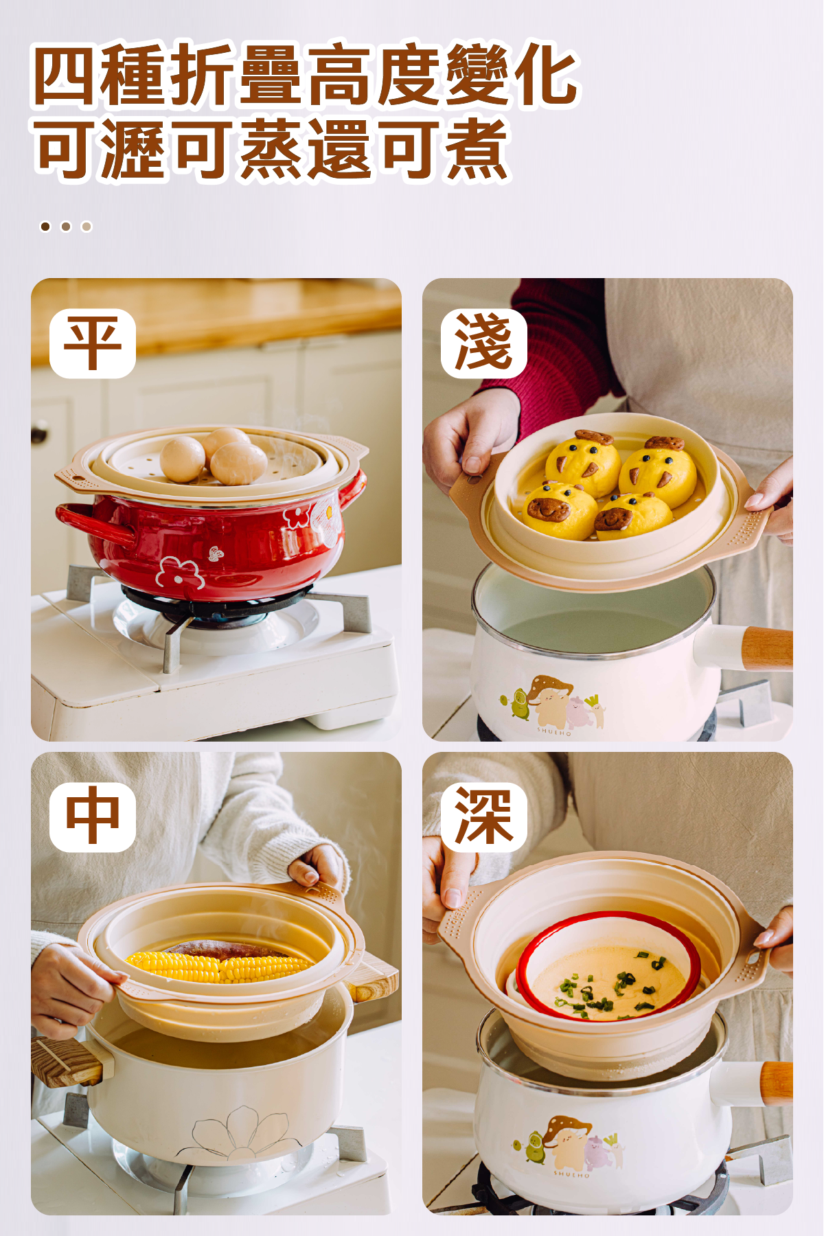 ◉耐熱上限為230°C,適用於隔水蒸、放入沸水中煮,請勿置於明火、烤箱或氣炸鍋中直接加熱。