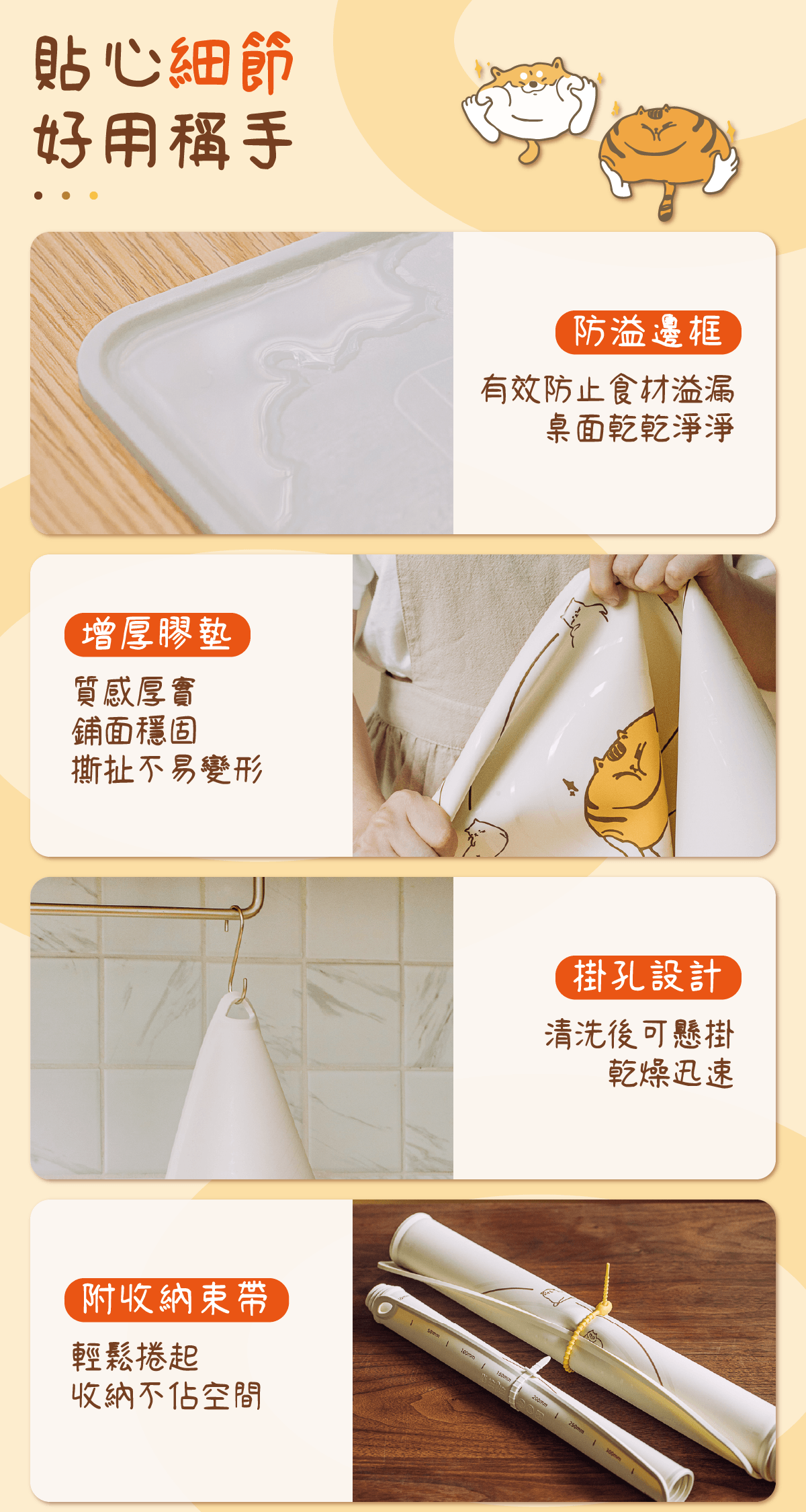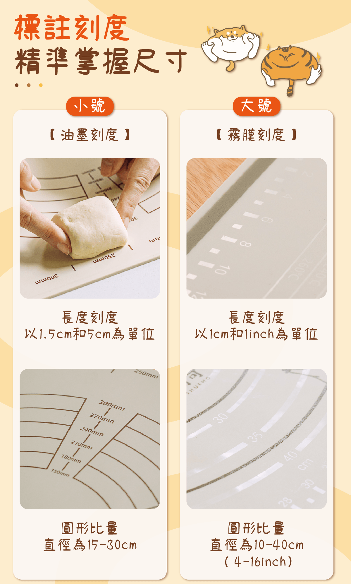 ◉在使用矽膠揉麵墊時,可能會發生染色的情況,建議使用後立即清洗以減少食材附著的時間,從而減輕染色情況。