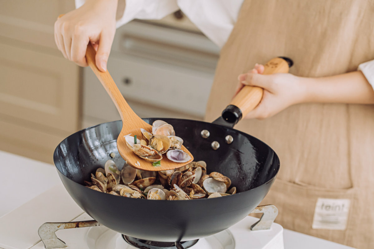 ◉木質鍋鏟在高溫下,鏟口較薄處容易發生碳化變黑,此屬木材正常反應。
