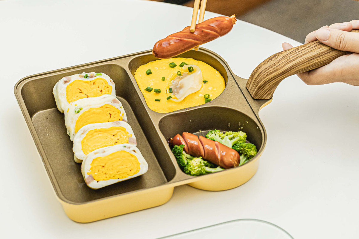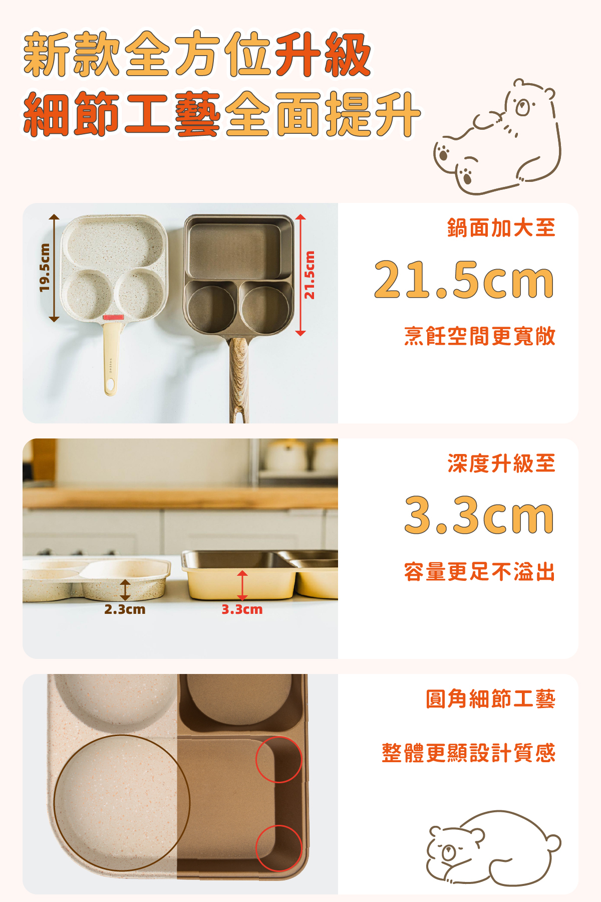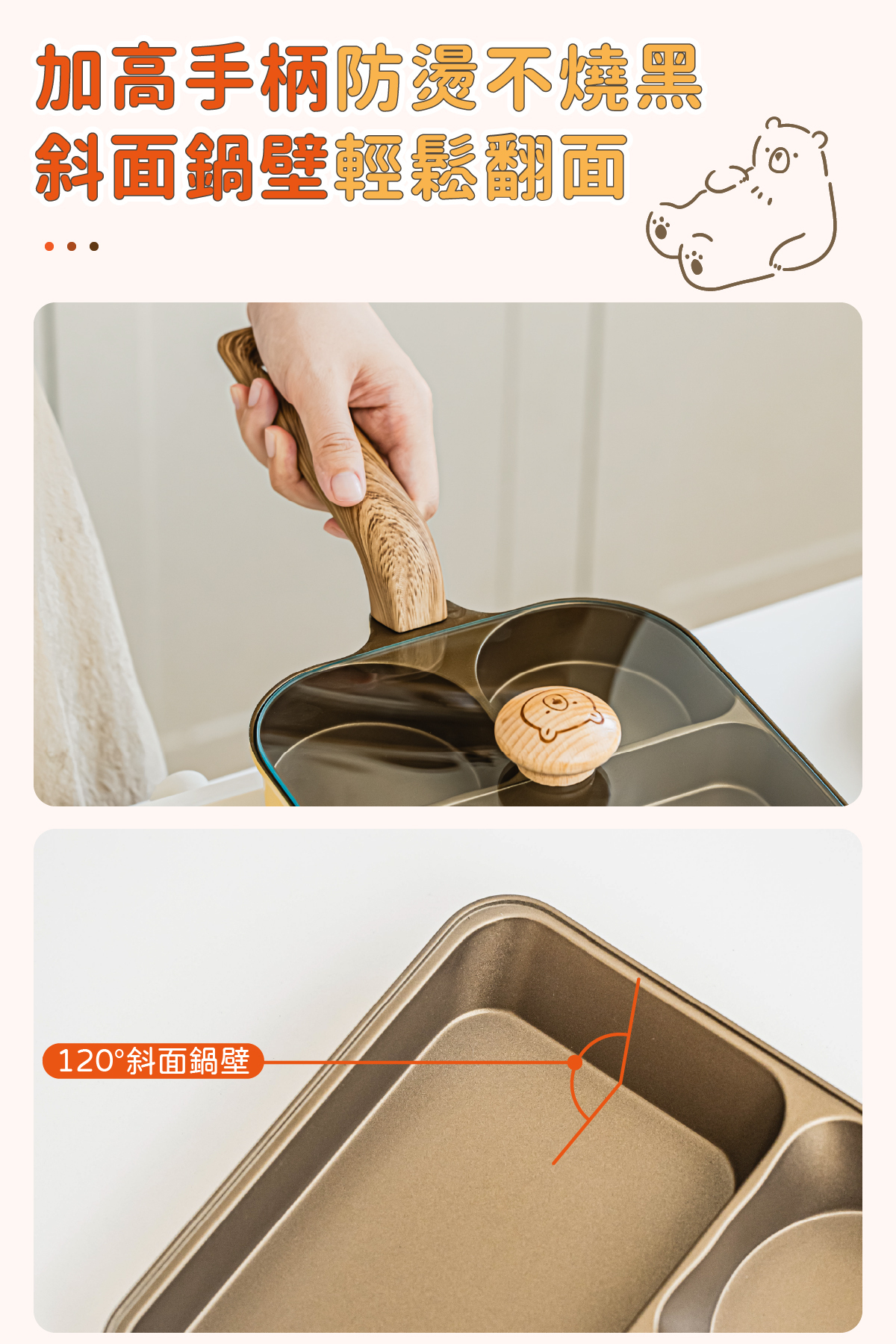 ◉熊熊三格煎鍋PRO的玻璃蓋造型為單向安裝,正確位置為出氣孔在右上方;邊緣圓角處留有間隙,方便取蓋,非品質問題。