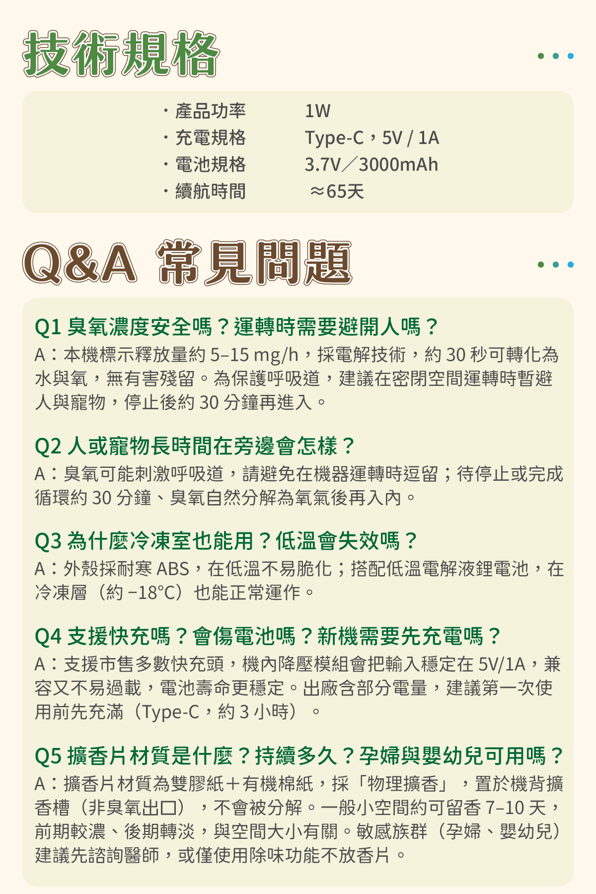 ◉效果會因異味來源、空間大小與模式不同而異;非產品瑕疵(使用不當、人為損壞、未依說明操作、主觀感受等)不適用相關退換政策。