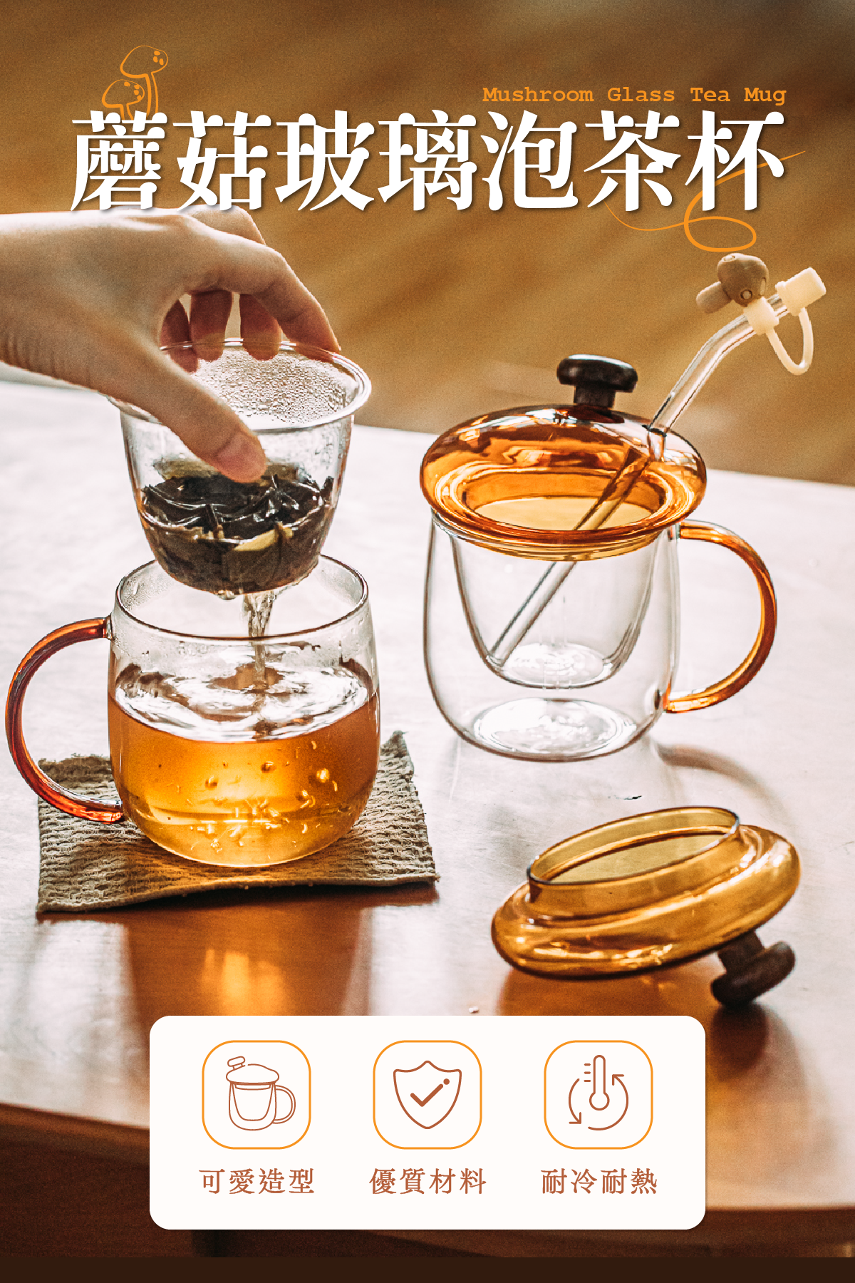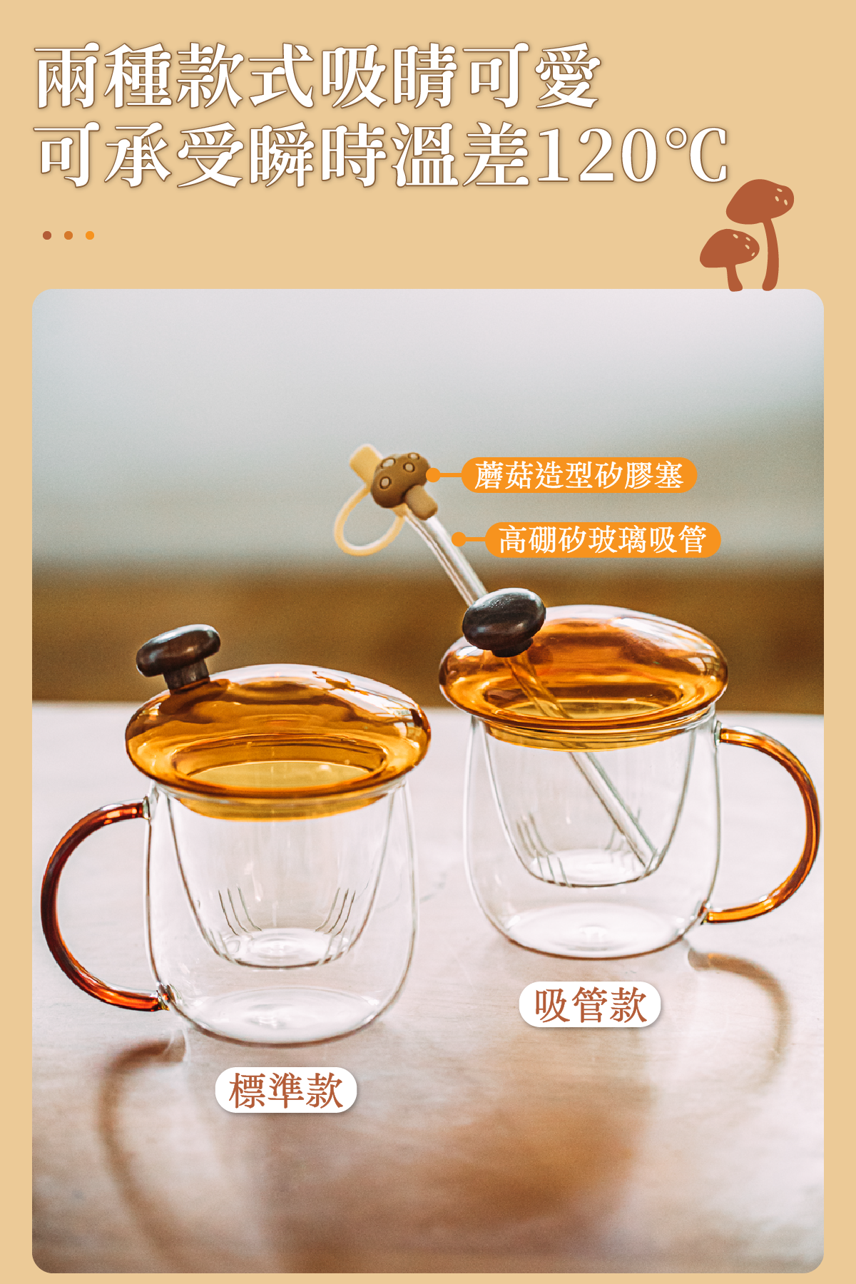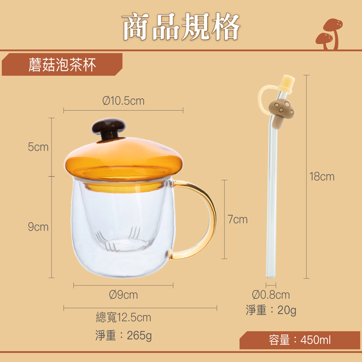 ✅可愛蘑菇造型 ✅450ml ✅高硼矽玻璃 ✅手工製作