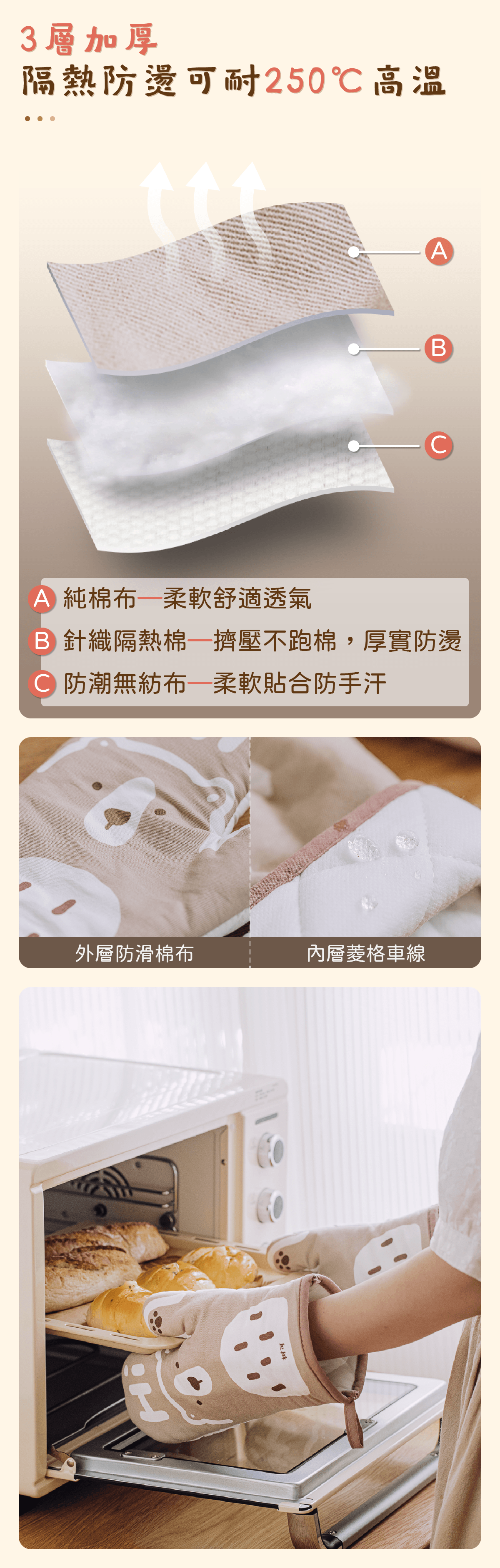 三層加厚,隔熱防燙耐溫達250℃🌡