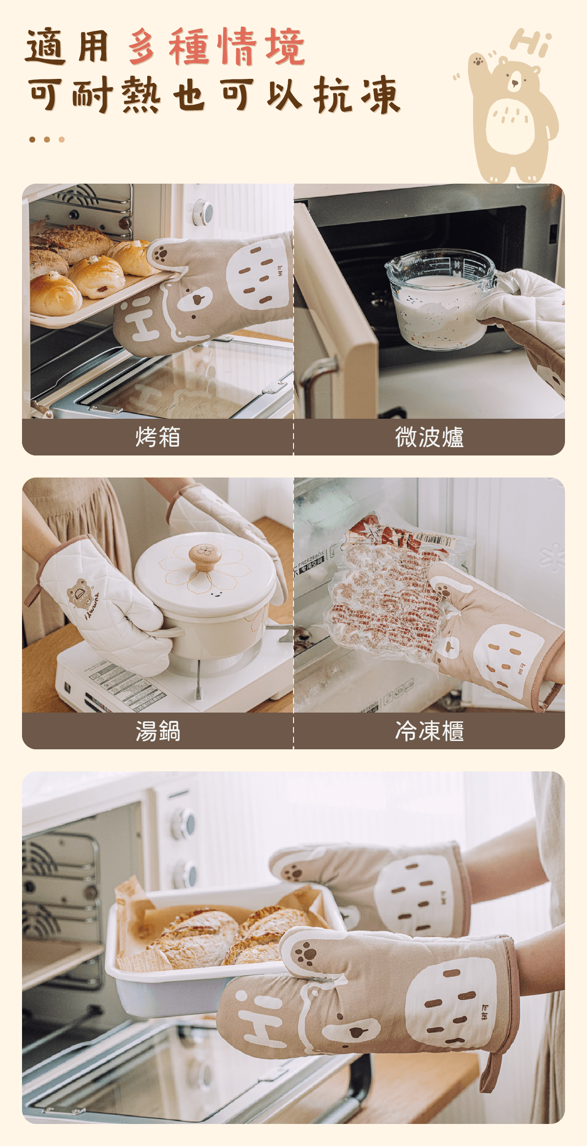 各種烤箱、微波爐取物、熱燙的鍋蓋、碗碟拿放都得心應手🤌🏻