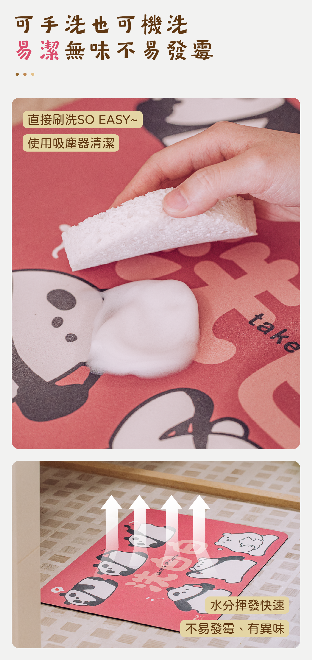 ◉些許灰塵可用吸塵器;普通污漬清水沖洗,軟刷清潔後,放置通風處晾乾即可。