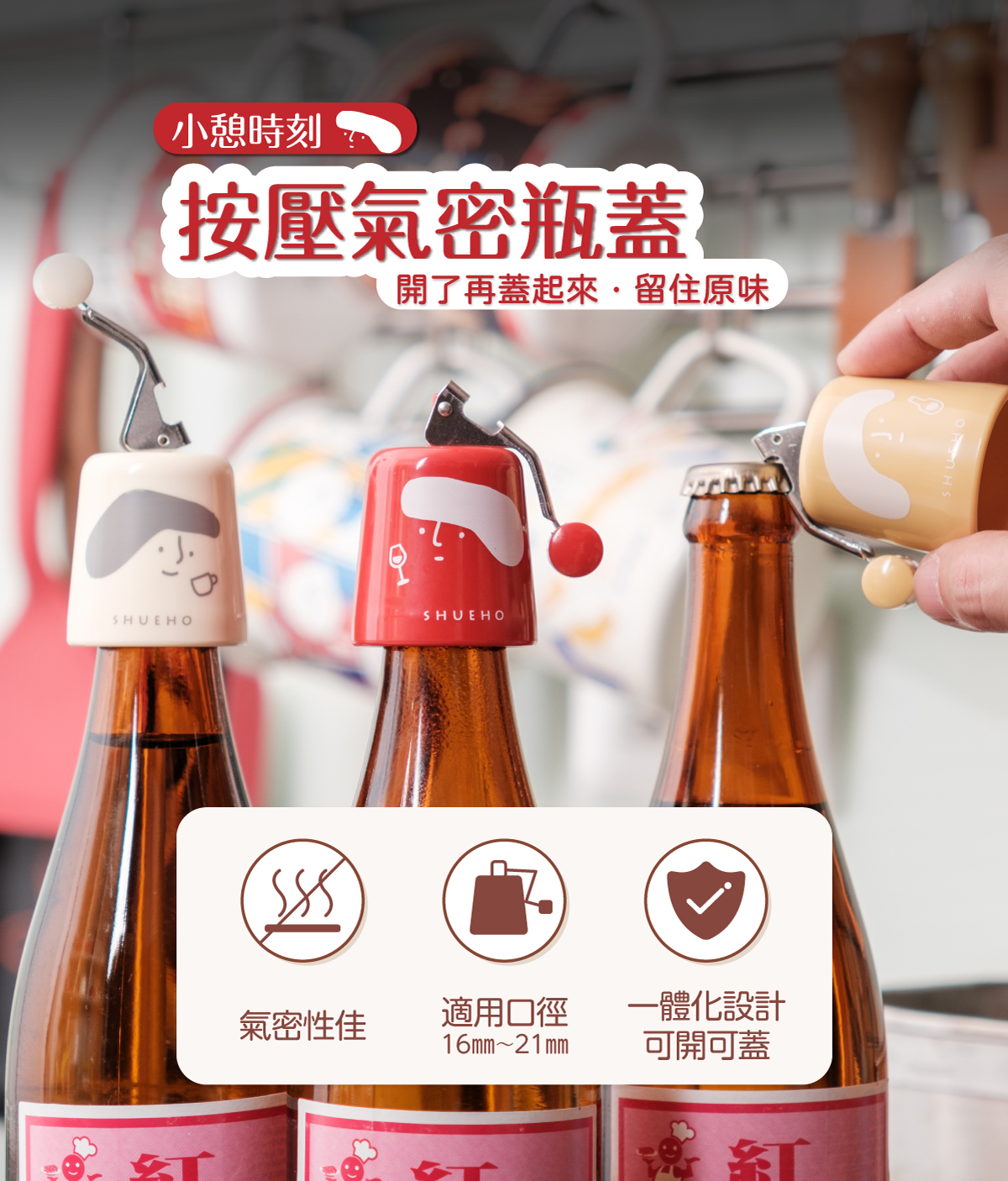 這個小小瓶蓋塞設計很巧妙,一按一壓就緊緊將瓶口密封,倒置都不會漏!