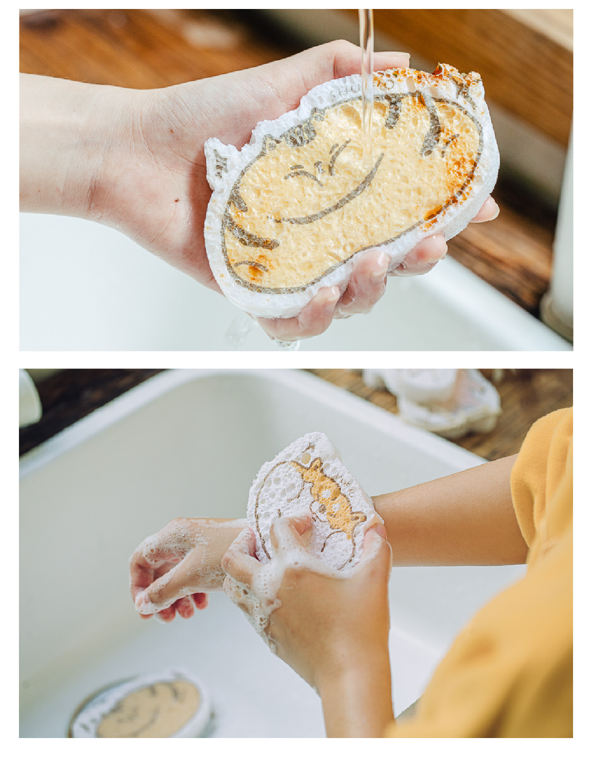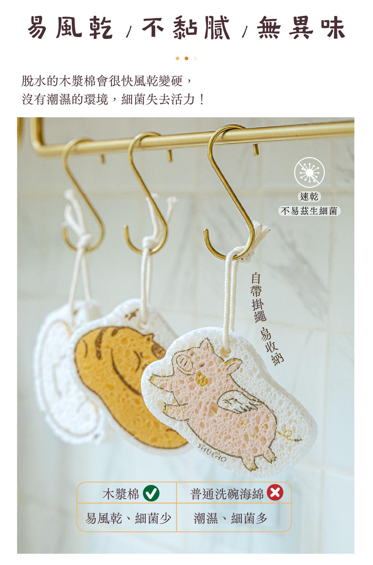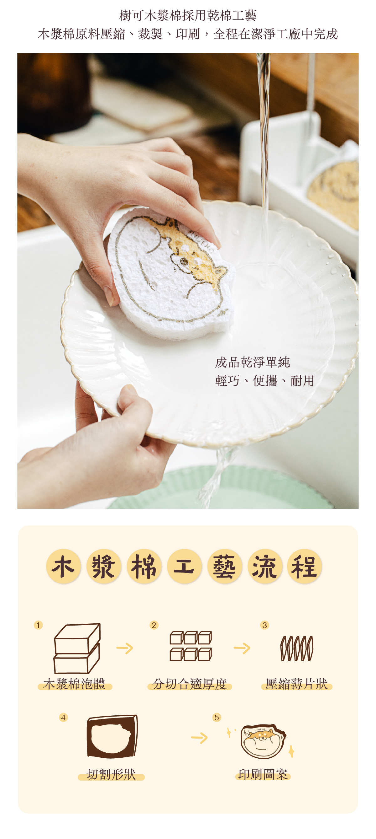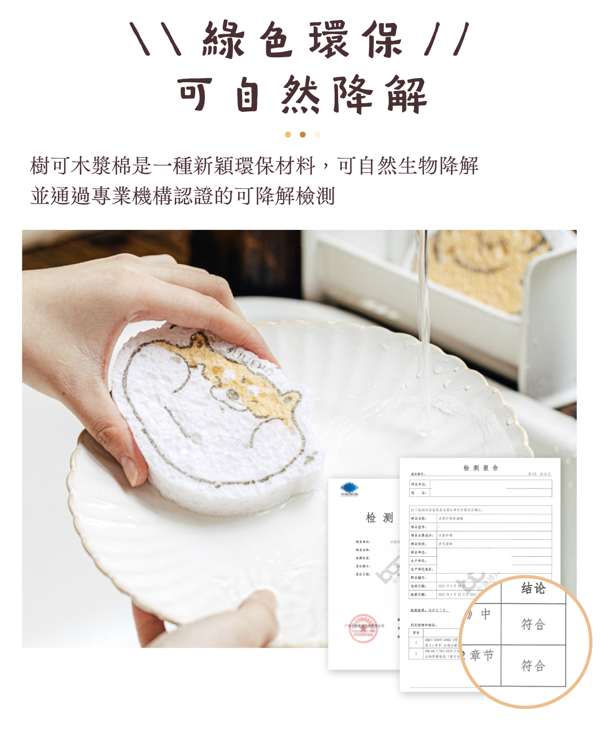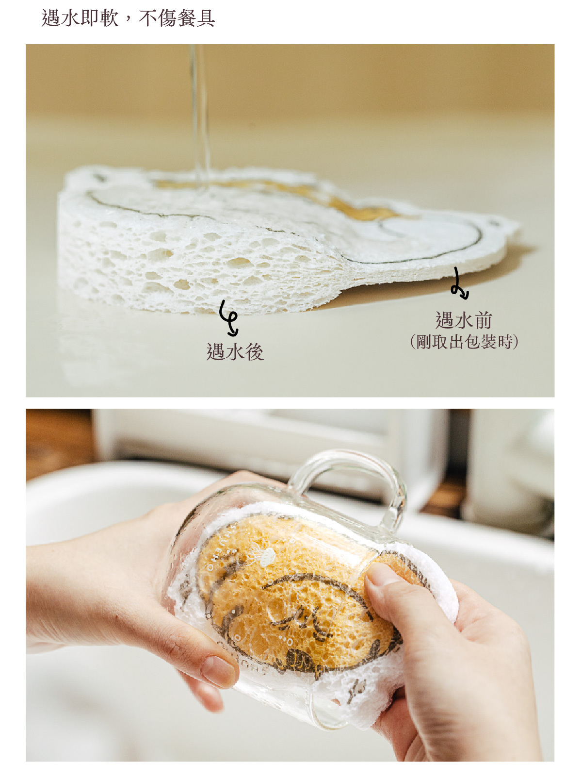 木漿棉本身是天然木纖維做的,不傷手不傷皮膚,清水一沖,油污分離,不只洗碗可用,當作沐浴棉也非常舒服,小寶寶都可以安心使用。
