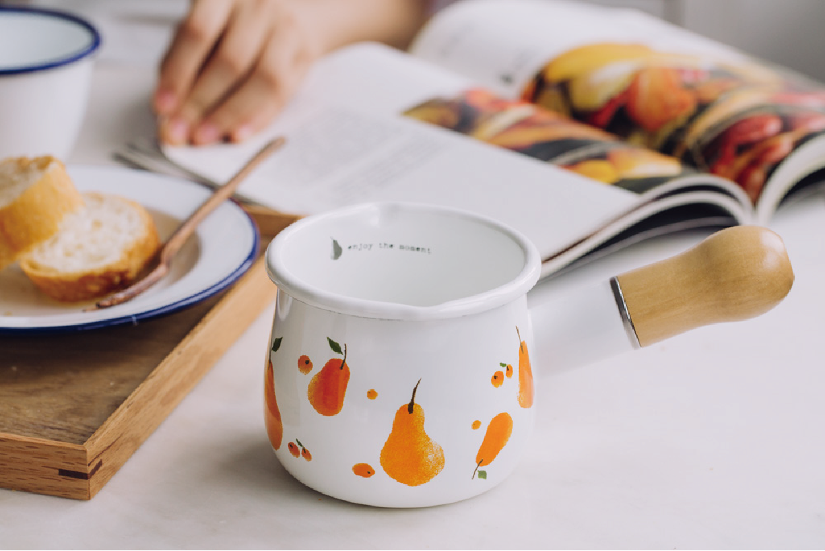 這樣一只小奶鍋,可以煮奶、煮醬料、熱奶油,也可以作為杯子喝水。