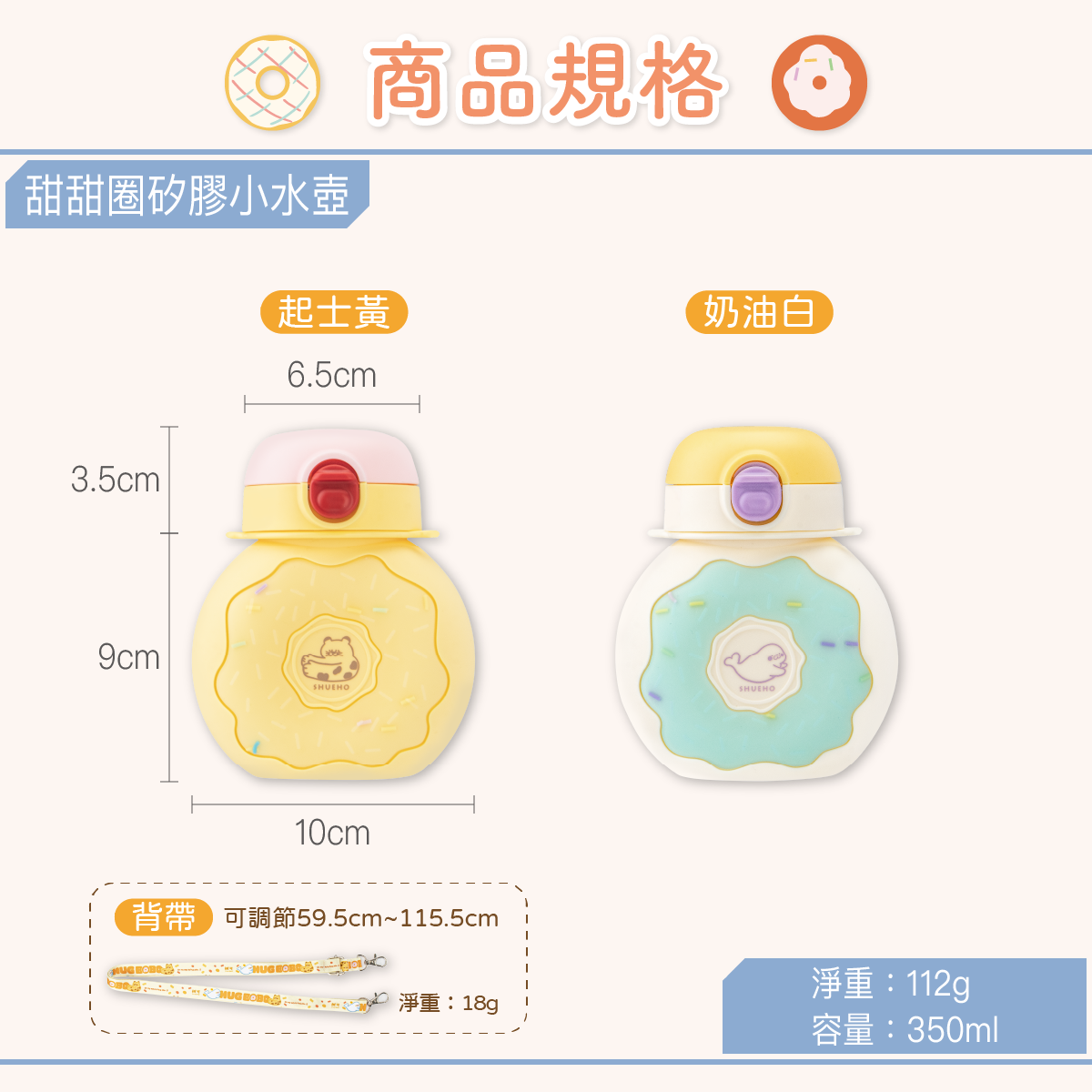 材質/壺身、吸管—矽膠;壺蓋—PP;背帶—滌綸、鋅合金