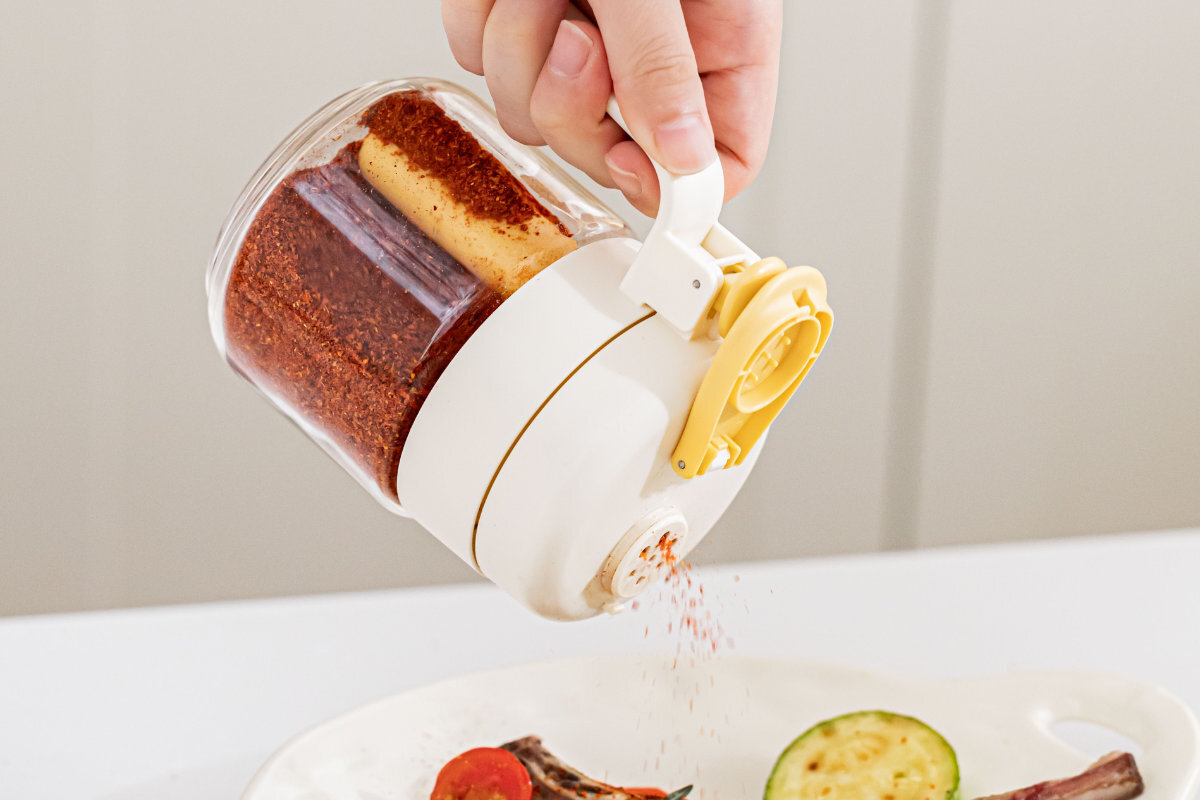 ◉撒料孔適用於一般精鹽或細粉類調味料,如需使用顆粒較大的食材,建議改以勺子取用。裝填時請勿過滿,以免影響撒料順暢度。