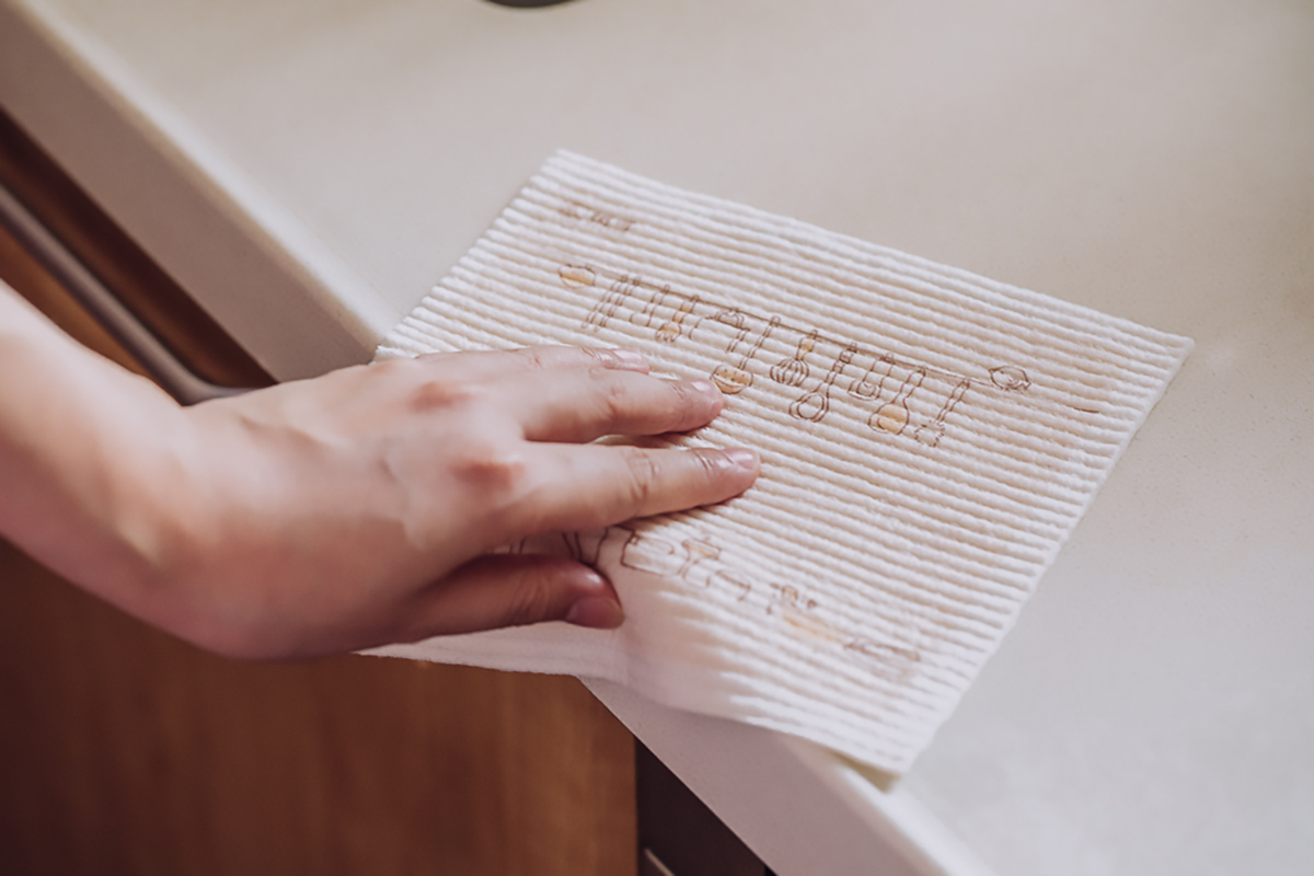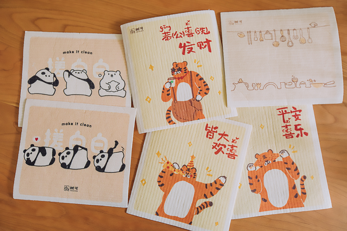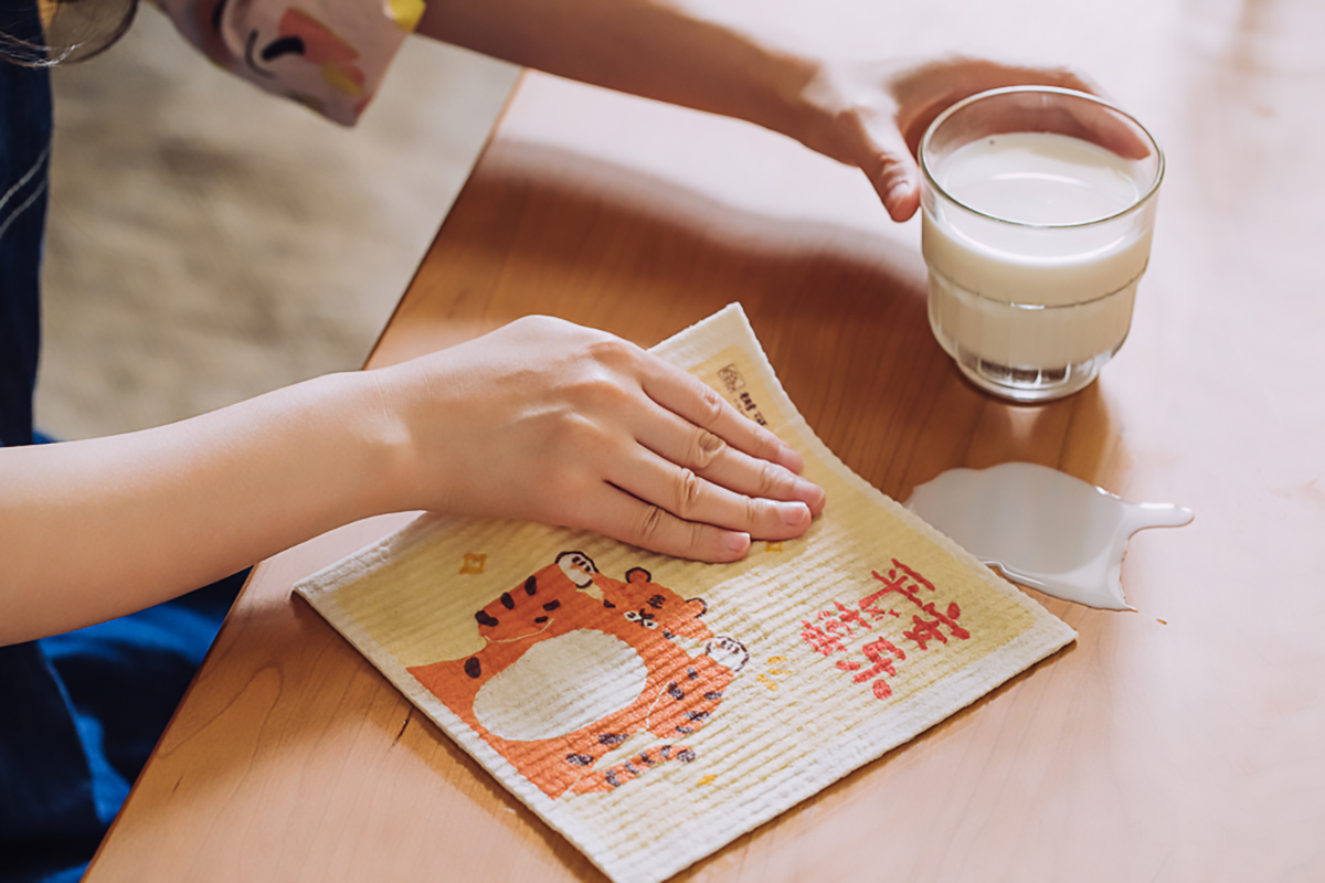 ◉方巾乾燥時質地會變硬,且體積會略微縮小,吸水後便會再度柔軟、膨脹,此為木漿棉物理特性。
